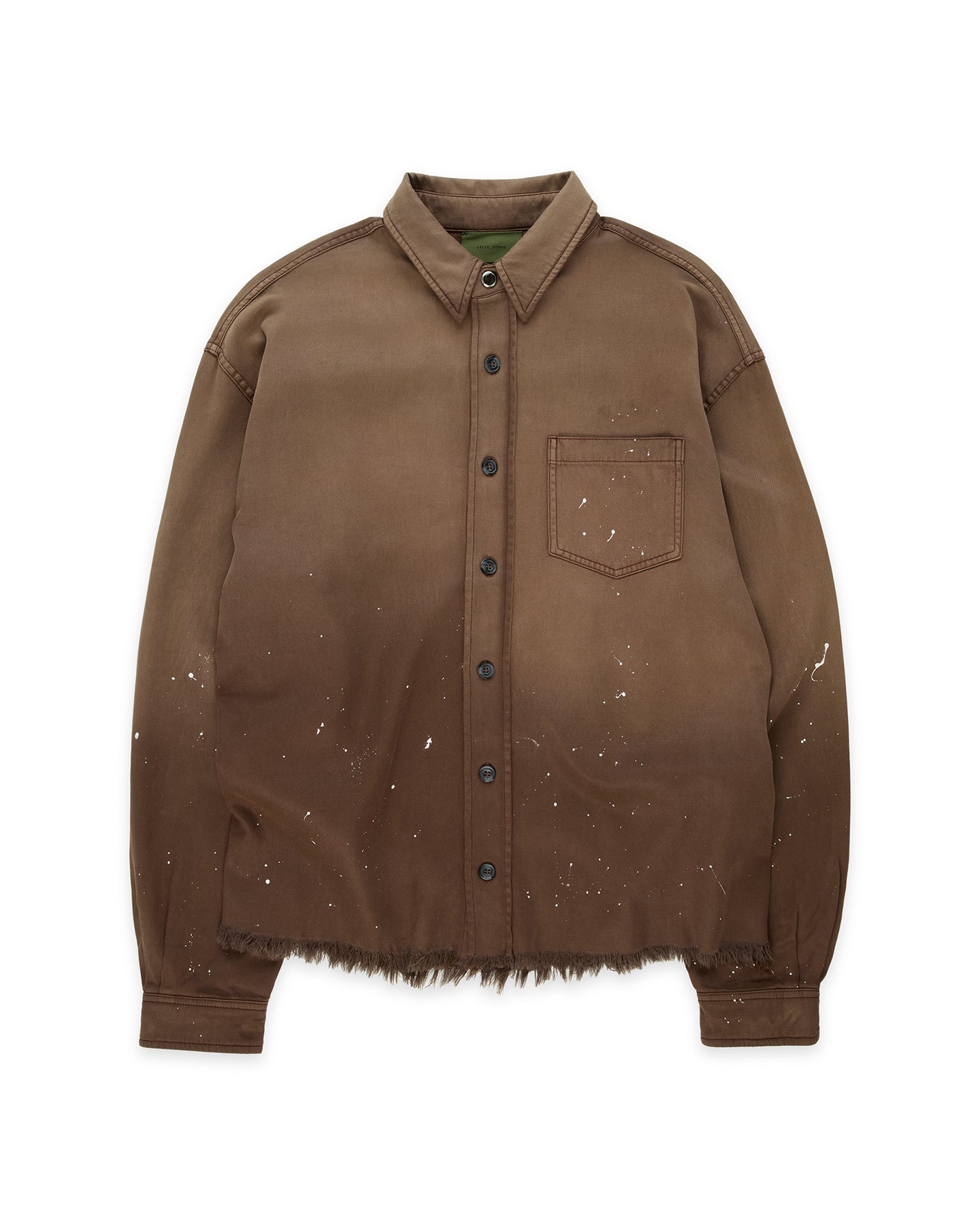 Distressed Italian Cotton Cashmere Shirt in Wine with Raw Hem