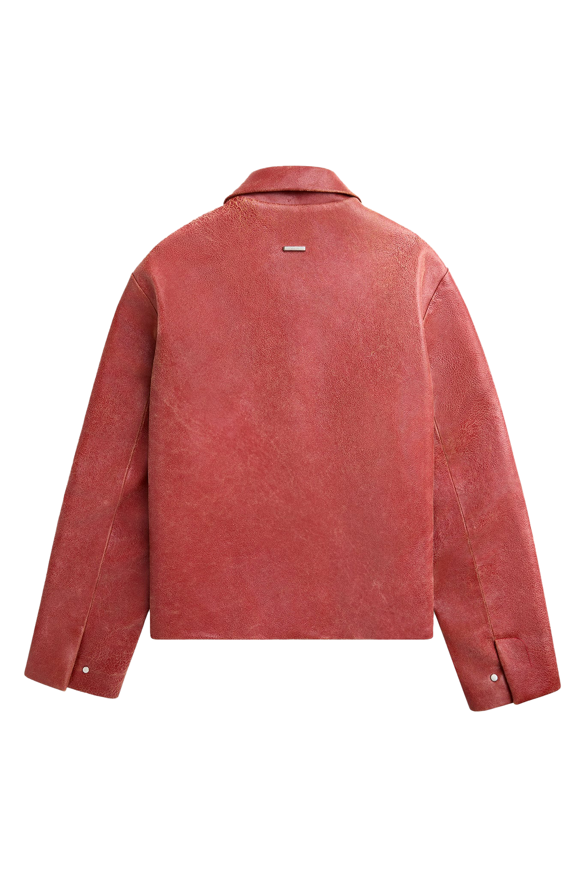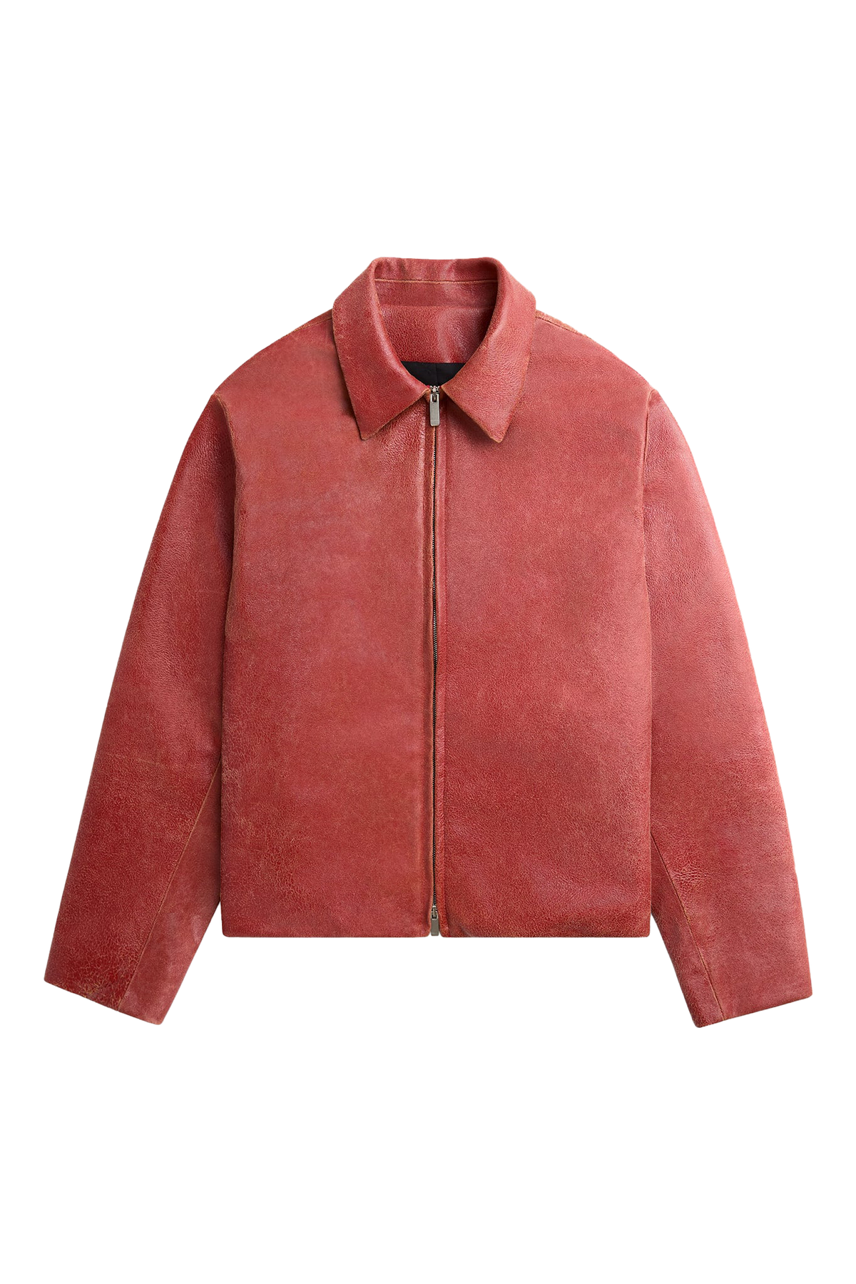 Traditional tailored style leather jacket made of cracked lamb skin from Italy. Simi cropped body with a relaxed armhole + sleeve